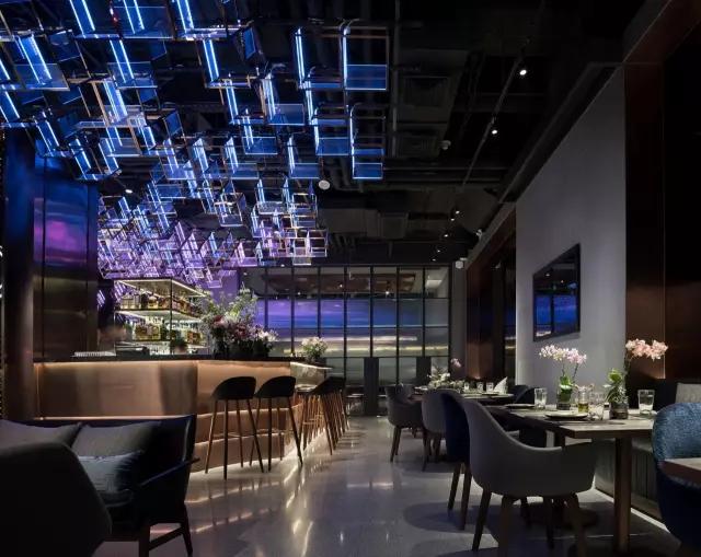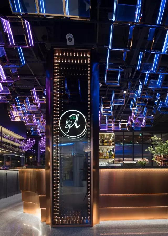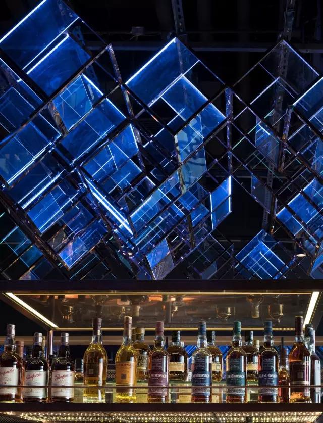 attabj意大利餐廳最美之處便是天頂上的藝術(shù)燈群,設(shè)計(jì)師通過抽象化、藝術(shù)化的手法,將這一感官體驗(yàn)濃縮為空間當(dāng)中的一組裝置,透明亞克力單元體如同酒杯內(nèi)的冰塊,而不斷變幻的LED燈光就像是色彩斑斕的酒體,兩者相互反應(yīng)形成夢(mèng)幻迷離的光影效果。