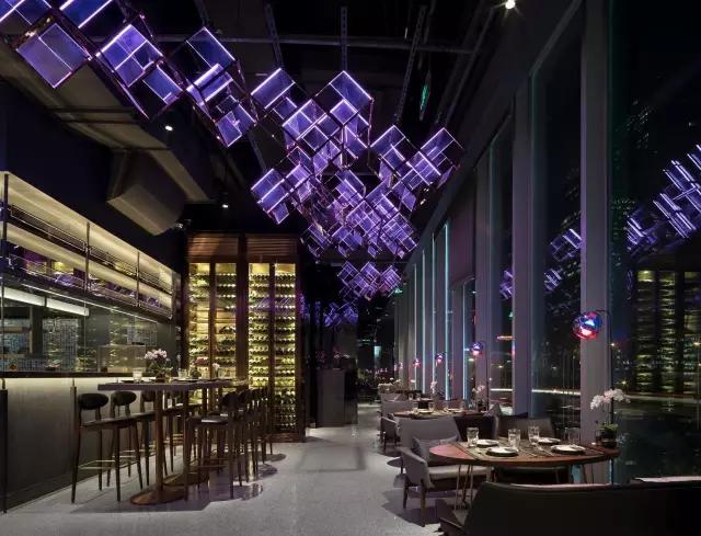 深夜,位于北京國(guó)貿(mào)中心attabj餐吧,猶如一只盛著色彩斑斕酒體的高腳杯,晶瑩的冰塊由于杯體的搖晃與酒融為一體,被酒一遍一遍的浸染,色彩終在空間中流淌開來,空氣里彌漫著微醺的氣息。