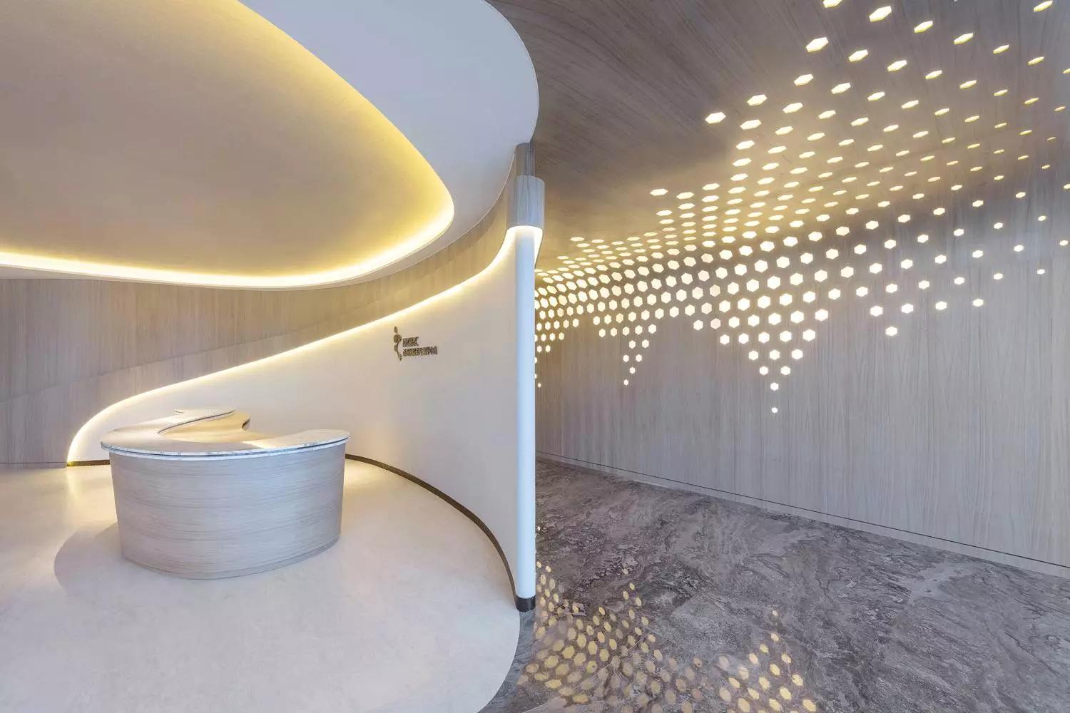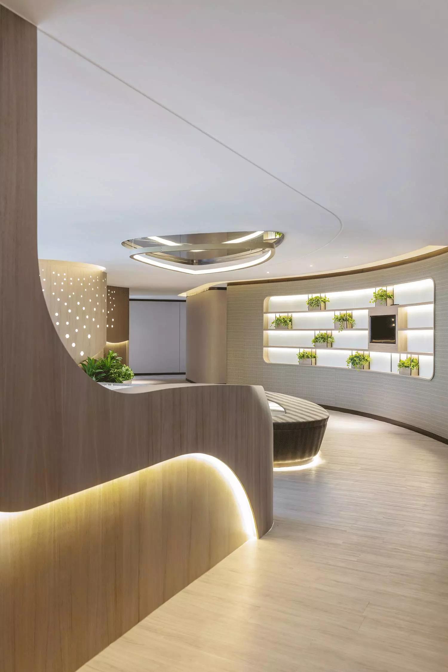 這一切該歸功于大自然的靈感,醫(yī)療中心的正門萃取最純?nèi)坏哪静?,配合溫暖的燈光分布,隨著流線形的空間引導(dǎo)訪客步進(jìn)全開(kāi)放的接待處。