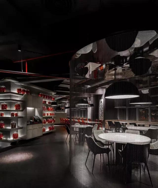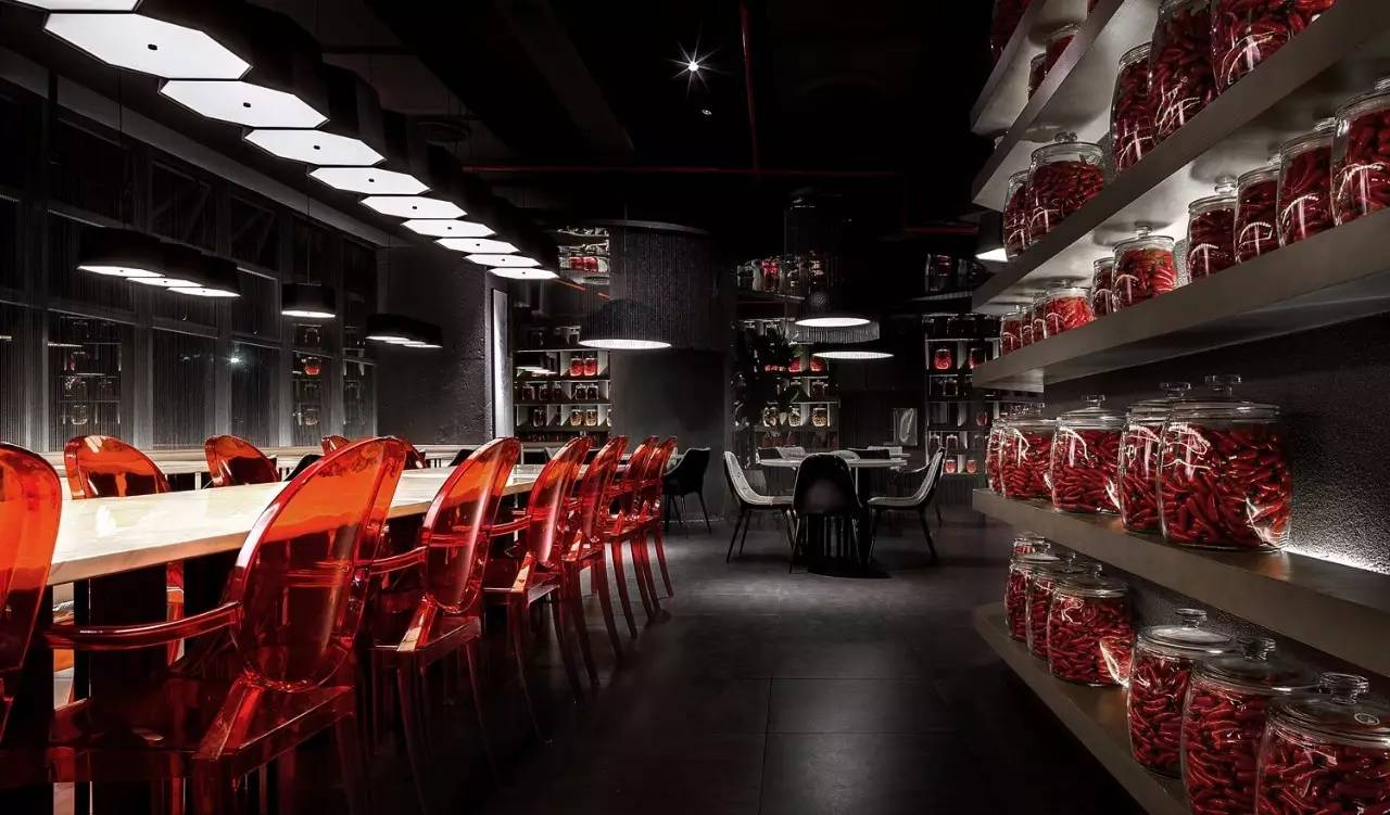 小辣椒湘菜餐廳空間,是以空間的多樣性為主軸。餐廳創(chuàng)始人提出以辣椒裝飾空間,設(shè)計師通過對“小辣椒”這個設(shè)計字符的不斷重復(fù),給空間增加藝術(shù)畫及創(chuàng)意燈飾,成為空間裝飾的細節(jié)。整個空間的體量不算特別大,但有下沉式空間設(shè)計。用于分割空間的雨滴式珠簾,似動而靜的雨滴隔斷簾營造親密又放松的用餐空間。