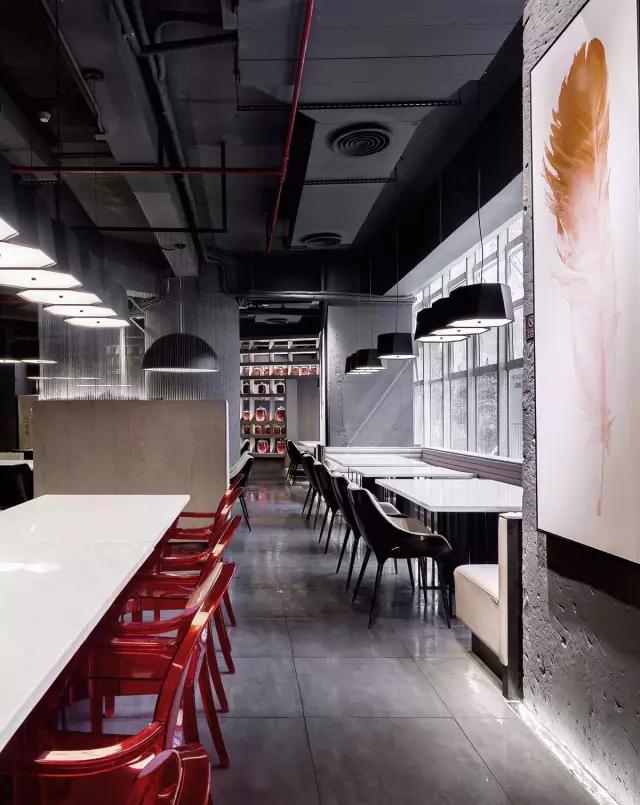 設(shè)計師的初心是以最少的項目預(yù)算,發(fā)揮此案項目最極致的藝術(shù)空間設(shè)計體驗。對成本的嚴格把控,給自己在設(shè)計與施工過程中施加壓力與難度,對材料及工藝的優(yōu)化成為了主案設(shè)計師不斷反復(fù)思考的問題。設(shè)計師決定保留空間原始的承重墻、柱子,解決傳統(tǒng)設(shè)計里的平面功能布局,除此之外對空間分布,區(qū)域劃分增加更多體驗感和現(xiàn)代藝術(shù)文化感受,讓來訪的食客,一步一個驚喜,動線流暢。設(shè)計除了營造合理用餐和聚會的優(yōu)雅環(huán)境,還通過精心的平面布置、空間規(guī)劃以及摩登藝術(shù)軟裝陳設(shè),使空間充滿時尚的藝術(shù)氛圍。當(dāng)然主筆設(shè)計師的重點還是不斷考慮食客的用餐體驗感及把產(chǎn)值比和支出比算準(zhǔn)、要有視覺效果和很舒服的空間感受,能源消耗要最低化,后勤動線和客人動線要明了。