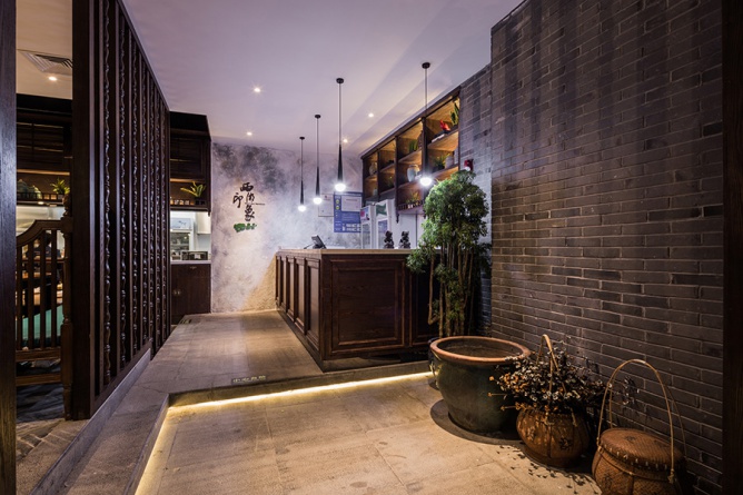 從遠(yuǎn)處望過來,一座江南小院落入眼中,白墻青瓦小橋流水,以清靈的體態(tài),展示萬般風(fēng)韻。 經(jīng)典的江南建筑別有恬靜內(nèi)秀的韻味,而江南院落給人一種,優(yōu)雅、寧靜、親切的感覺,正是生活在浮躁社會中的我們所缺失的,所以在本案中設(shè)計(jì)師以江南的小院的作為此次設(shè)計(jì)主題。無論是舊時(shí)還是依稀,江南水鄉(xiāng)的一山一水一物,均是文人墨客筆下的絕妙勝景,盡顯江南的風(fēng)情。而這次,跟緊我的腳步來領(lǐng)略屬于江南的意境。 整個店面的平面布局是根據(jù)江南小院建筑布局來延伸切入,以格局的形式將餐廳分成了院入口,陽臺,閨房等五大板塊。江南建筑,高低錯落,古樸幽靜,含蓄內(nèi)斂。 有的枕山面水,有的面河而居,有的夾河而造,清澈的河水,輕盈的小橋,窄窄的街巷,深深的庭院,凝練成江南水鄉(xiāng)傳統(tǒng)民居的典型意境。 為了把這意境體現(xiàn)的淋漓盡致,設(shè)計(jì)師將入口處抬高,錯落有致,營造出“曲徑通幽處,禪房花木深”的氛圍,令人漸入佳境,而這對空間的分割,避免平鋪直敘的蒼白,也是為餐廳增添了幾分寧靜。 |